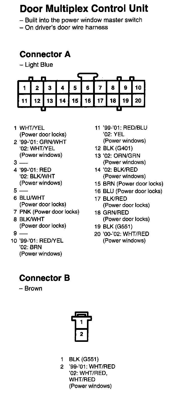 Door Multiplex Control Unit Connectors A, B: