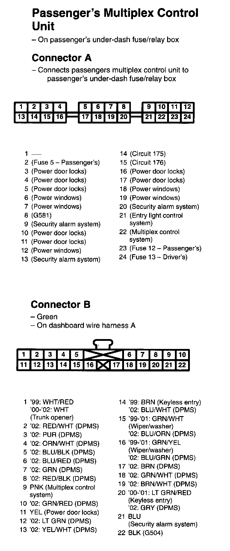 Passenger's Multiplex Control Unit Connectors A, B: