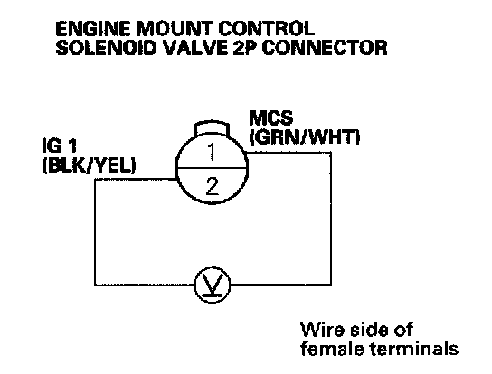YES - Reconnect the engine mount control solenoid valve 2P connector to the solenoid valve. The engine mount control system is OK.