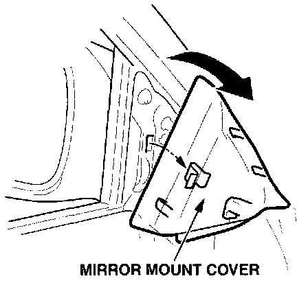 1. Remove the mirror mount cover from the driver's door by pulling out on the upper back corner.