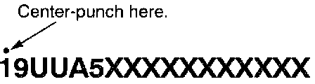 11. Center-punch a completion mark above the first character (1) of the engine compartment VIN.