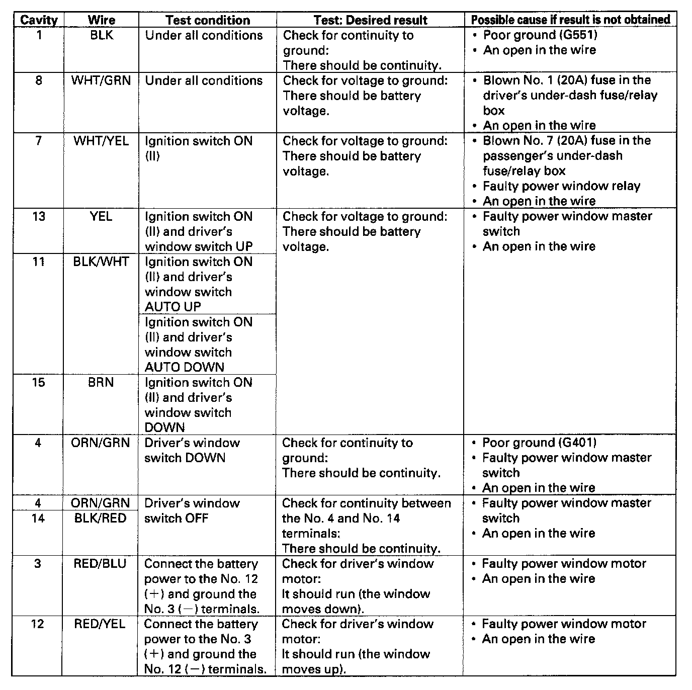 Power WindowsControl Unit Input Test
