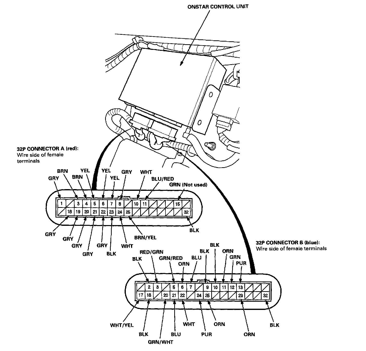 2. Disconnect the 32P connectors from the OnStar control unit.