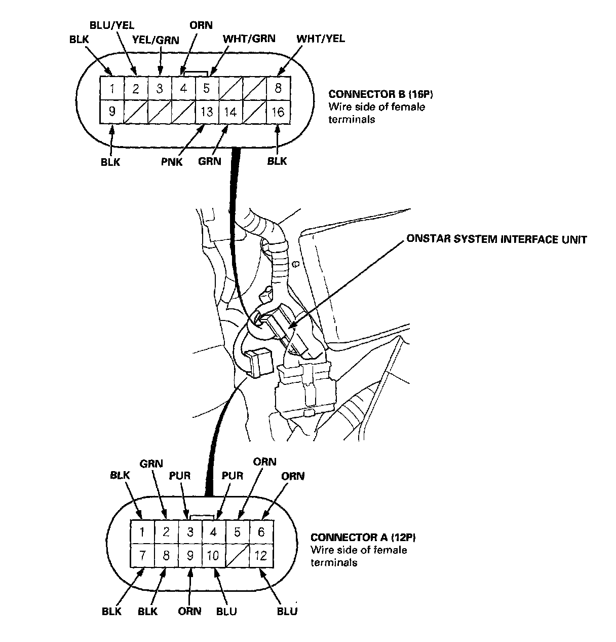 2. Disconnect the 12P connector from the OnStar system interface unit.