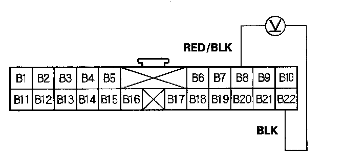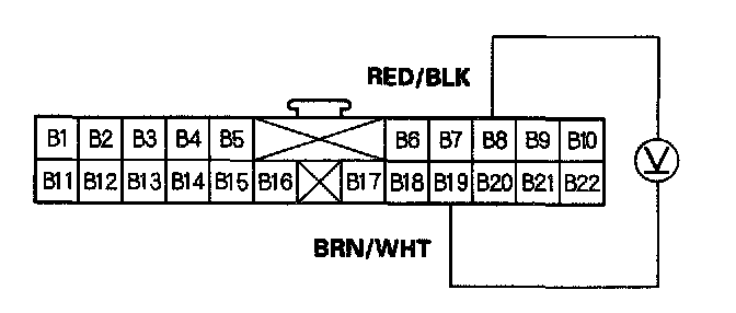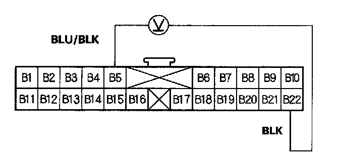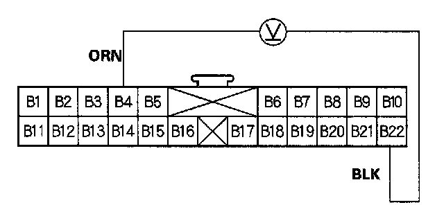 15. Check for voltage between the B8 and B22 terminals.