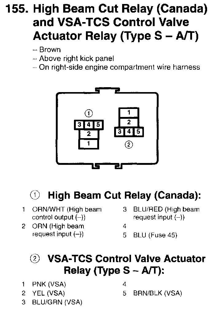 High Beam Cut Relay(Canada) And VSA-TCS Control Valve Actuator Relay (Type S - A/T):