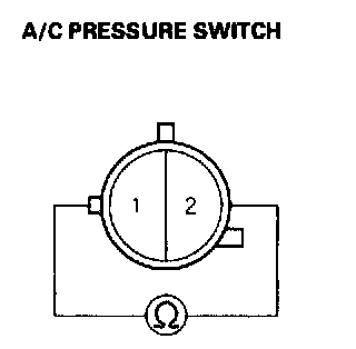 5. Check for continuity between the No. 1 and No. 2 terminals of the A/C pressure switch.
