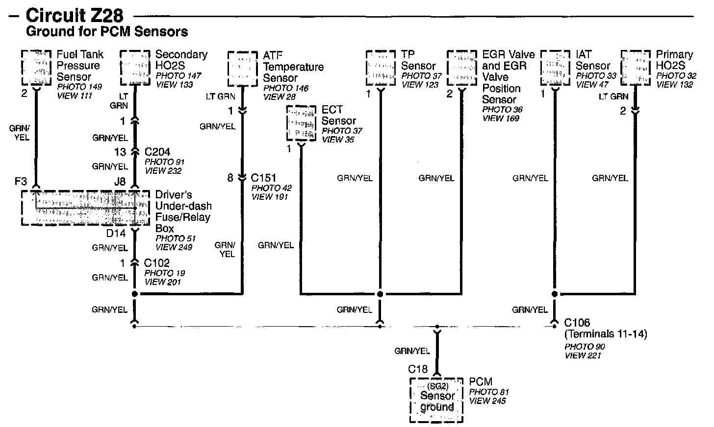 Circuit Z28 - Ground For PCM Sensors Image 15-14: