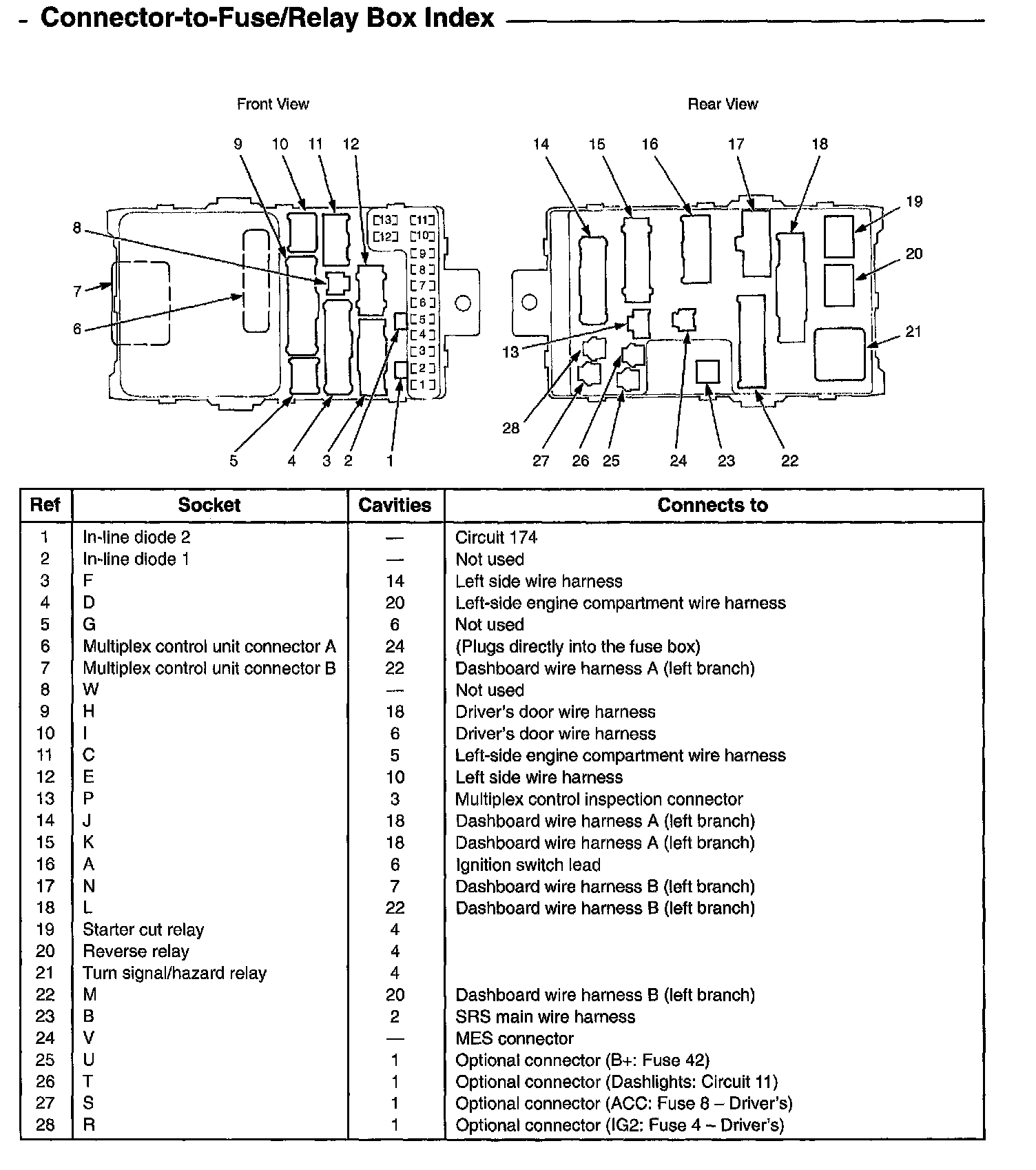 Connector-to-Fuse/Relay Box Index