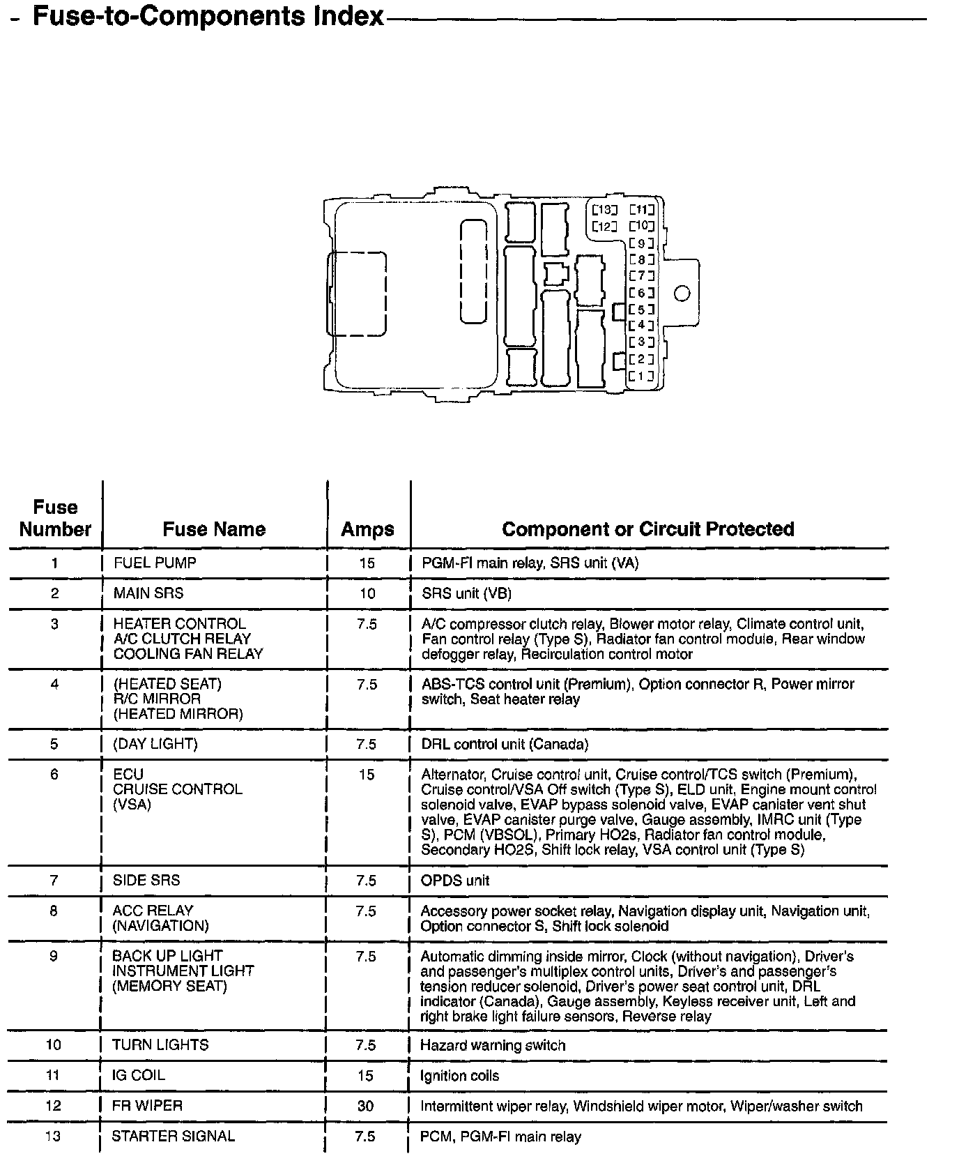 Fuse-to-Components Index