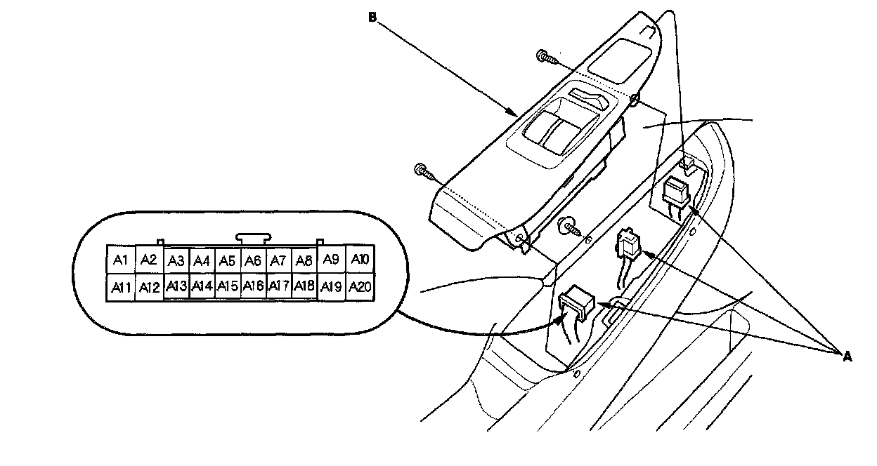 7. Make the following input tests at connector B and the passenger's under-dash fuse/relay box socket.