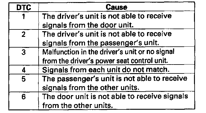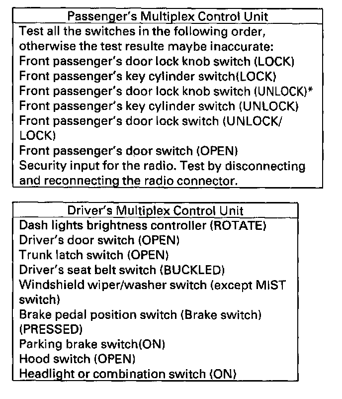 15. Look in the following tables for the switch most closely related to the problem. Test all the switches in the following order, otherwise the test results may be inaccurate. While still in Mode 2, operate that switch to test the wire, switch, and its control unit input.