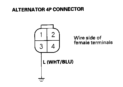 Charging System Indicator Test1. Check the B terminal, that the 4P connector and under-hood fuse/relay box terminals are securely tightened.