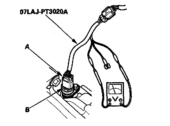 1. Disconnect the 3P connector from the vehicle speed sensor (VSS) (A).