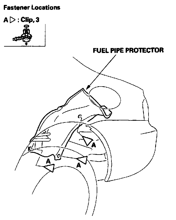 Install the fuel pipe protector in the reverse order of removal, and replace any damaged clips.