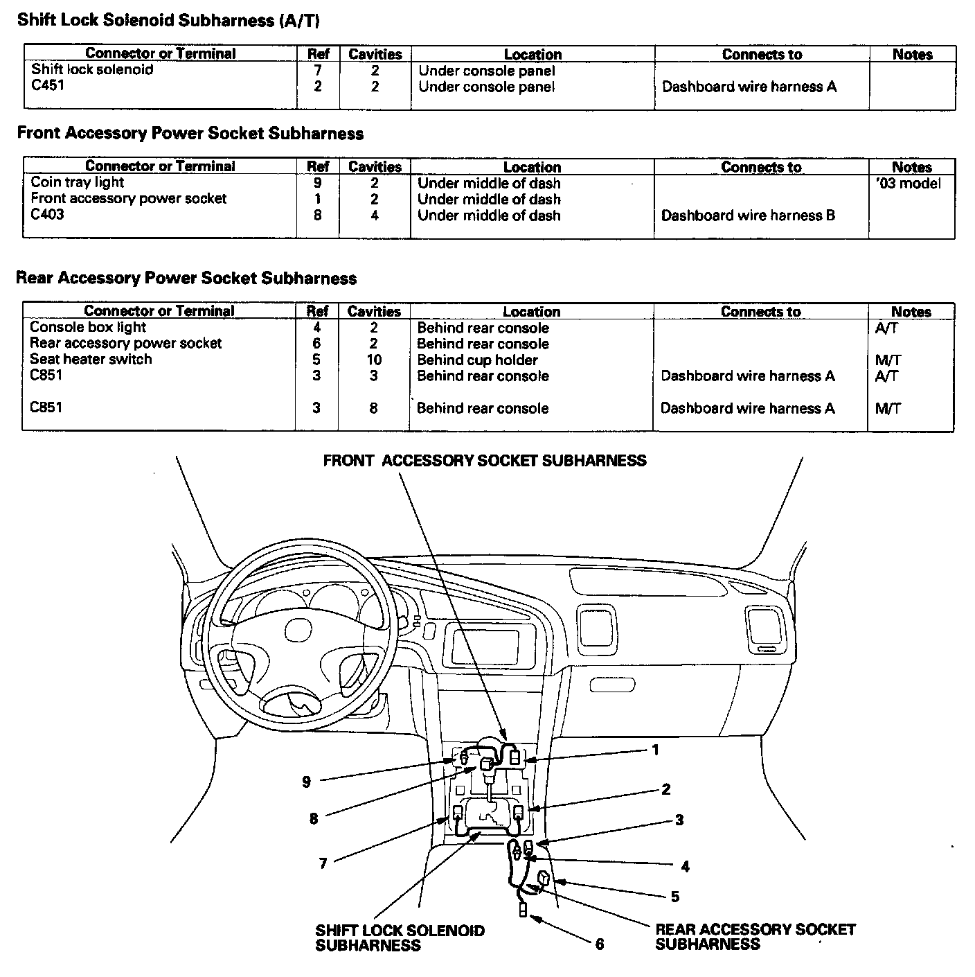 Shift Lock Solenoid Subharness (A/T)/Front Accessory Power Socket Subharness/Rear Accessory Power Socket Subharness: