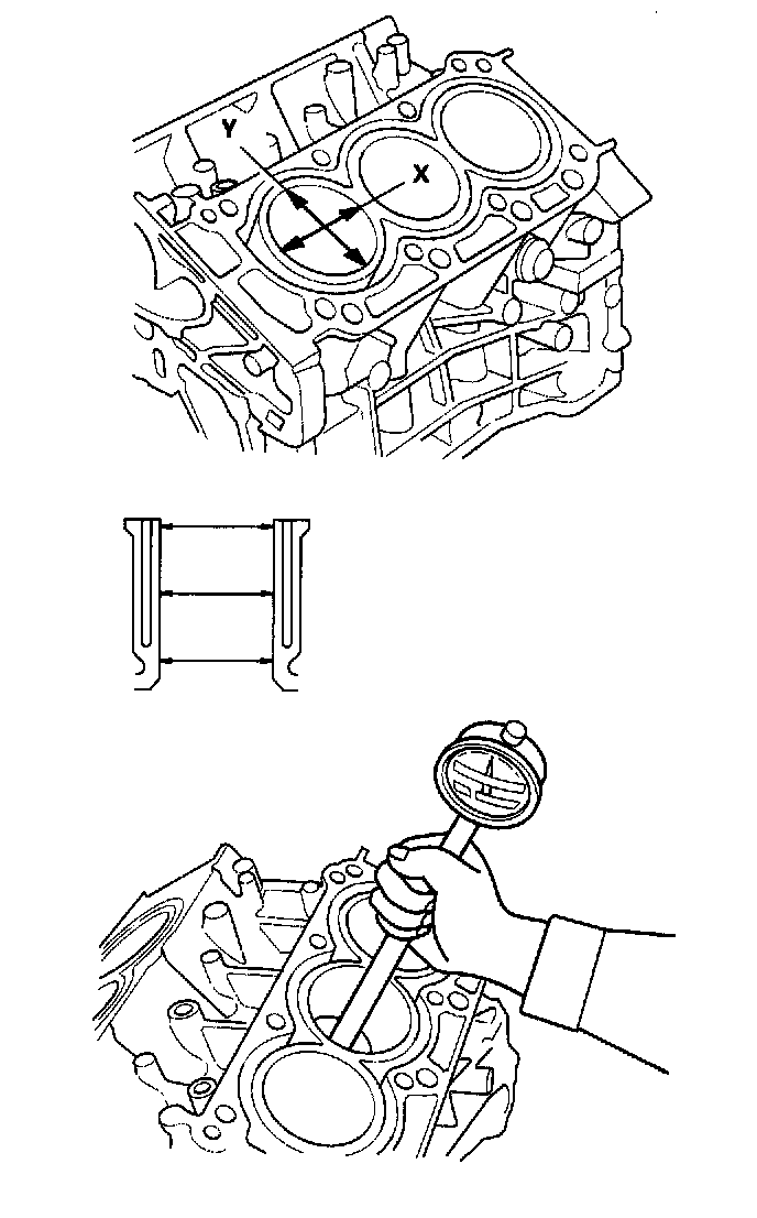 4. Measure wear and taper in directions X and Y at three levels in each cylinder as shown.
