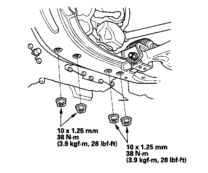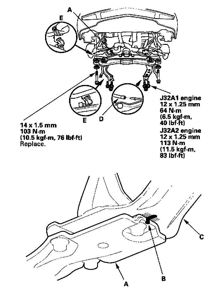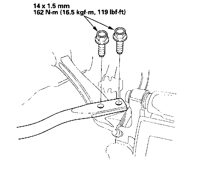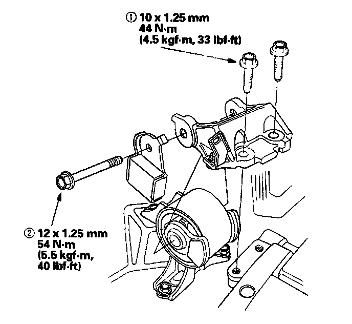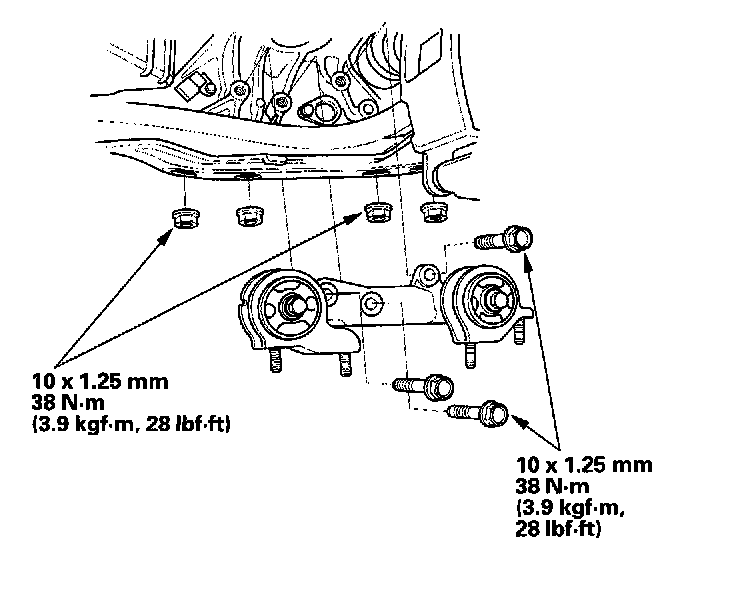 NOTICE: Reinstall the mounting bolts/nuts in the sequence given. Failure to follow this sequence may cause excessive noise and vibration, and reduce bushing life.