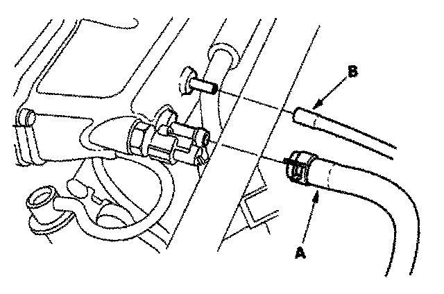 38. Install the brake booster vacuum hose (A) and vacuum hose (B)