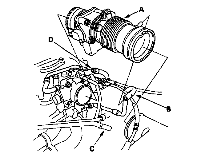 48. Install the evaporative emission (EVAP) control canister hose (D).