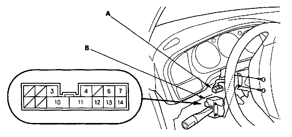 3. Disconnect the 14P connector (A) from the combination light switch (B).