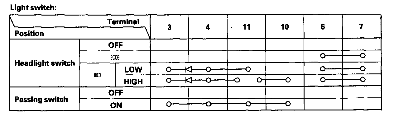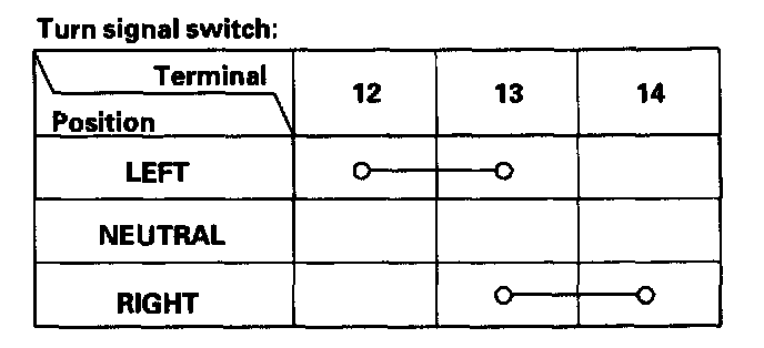 - If the terminals look OK, check for continuity between the terminals in each switch position according to the tables.