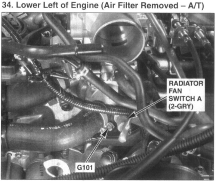 34. Lower Left of Engine (Air Filter Removed - A/T):