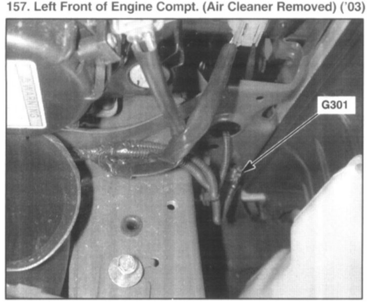 157. Left Front of Engine Compt. (Air Cleaner Removed) ('03):