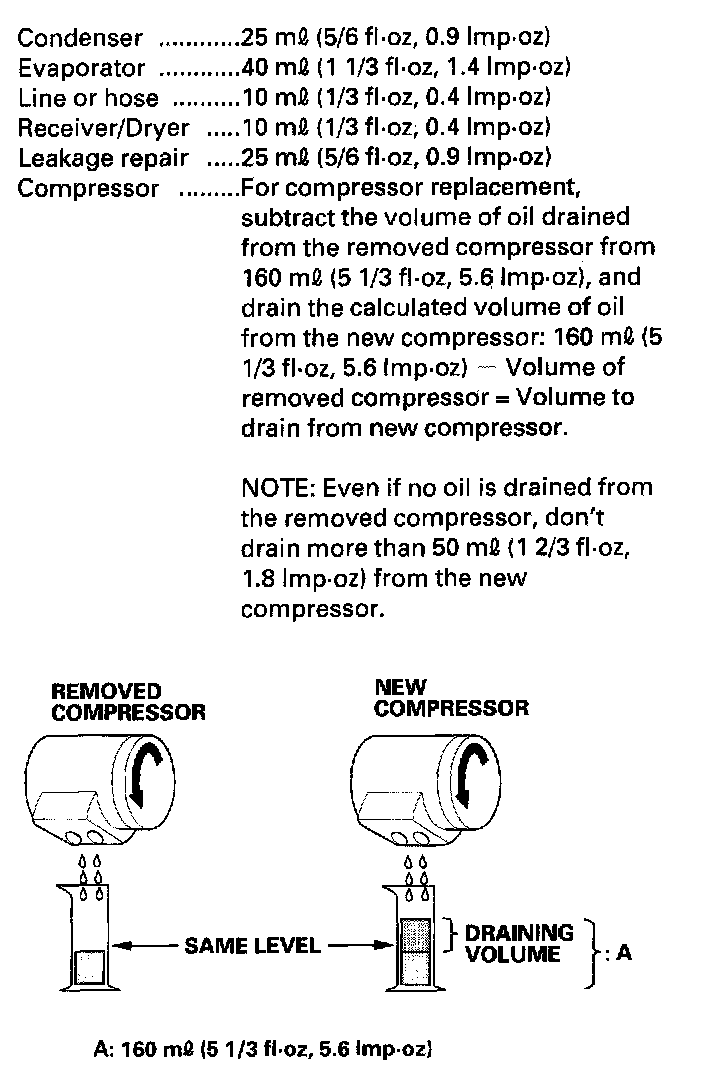 Add the recommend refrigerant oil in the amount listed if you replace any of the following parts.