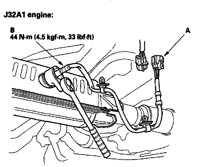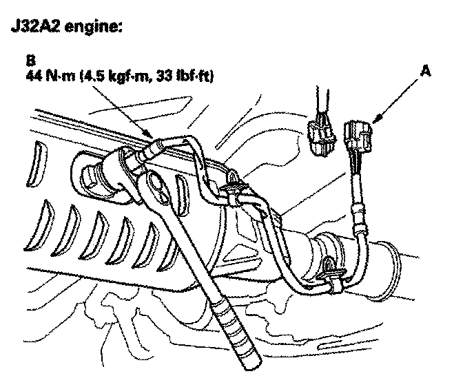 1. Disconnect the secondary HO2S 4P connector (A), then remove the secondary HO2S (B).