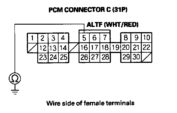 12. Check for continuity between body ground and PCM connector terminal C5.
