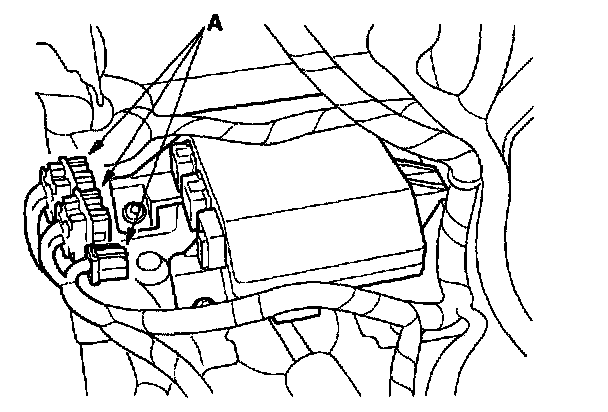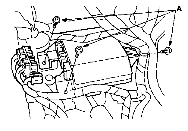 7. Remove the three Torx bolts (A) from the SRS unit, then pull out the SRS unit from the bracket.