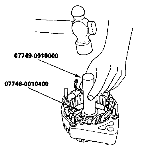 17. With a hammer and the special tools, install a new front bearing in the stator housing.