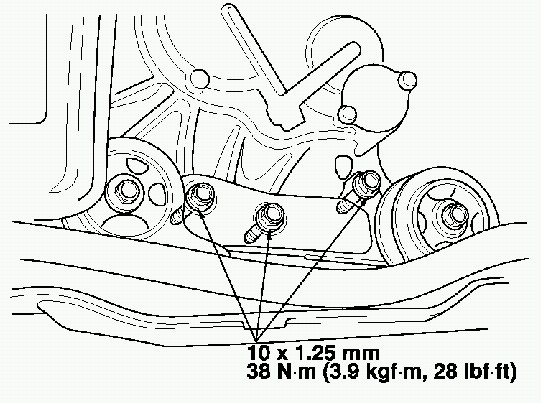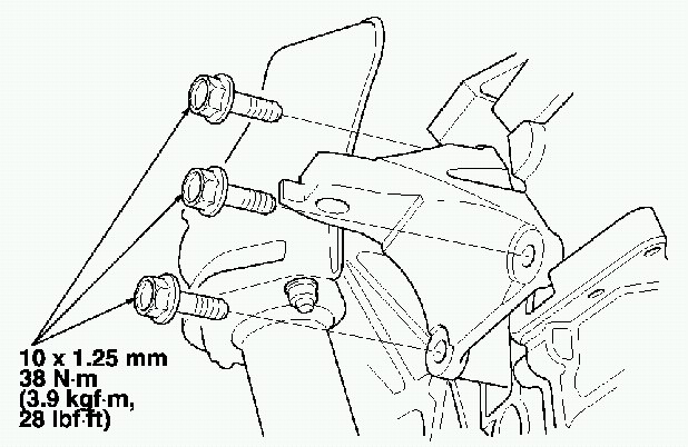 11. Tighten the three bolts on the transmission side mount.