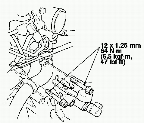 25. Install the front engine mount nut and front engine lock damper bracket bolts.
