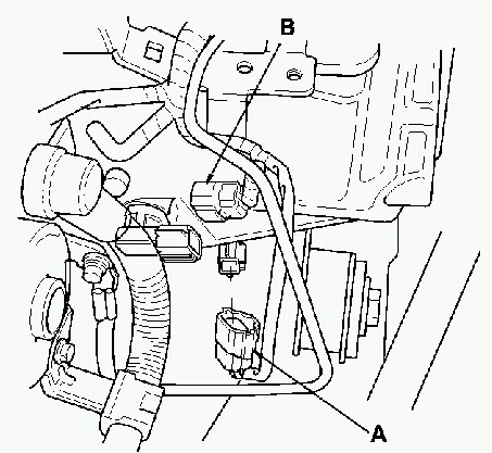 24. Connect the countershaft speed sensor connector (A) and mainshaft speed sensor connector (B).