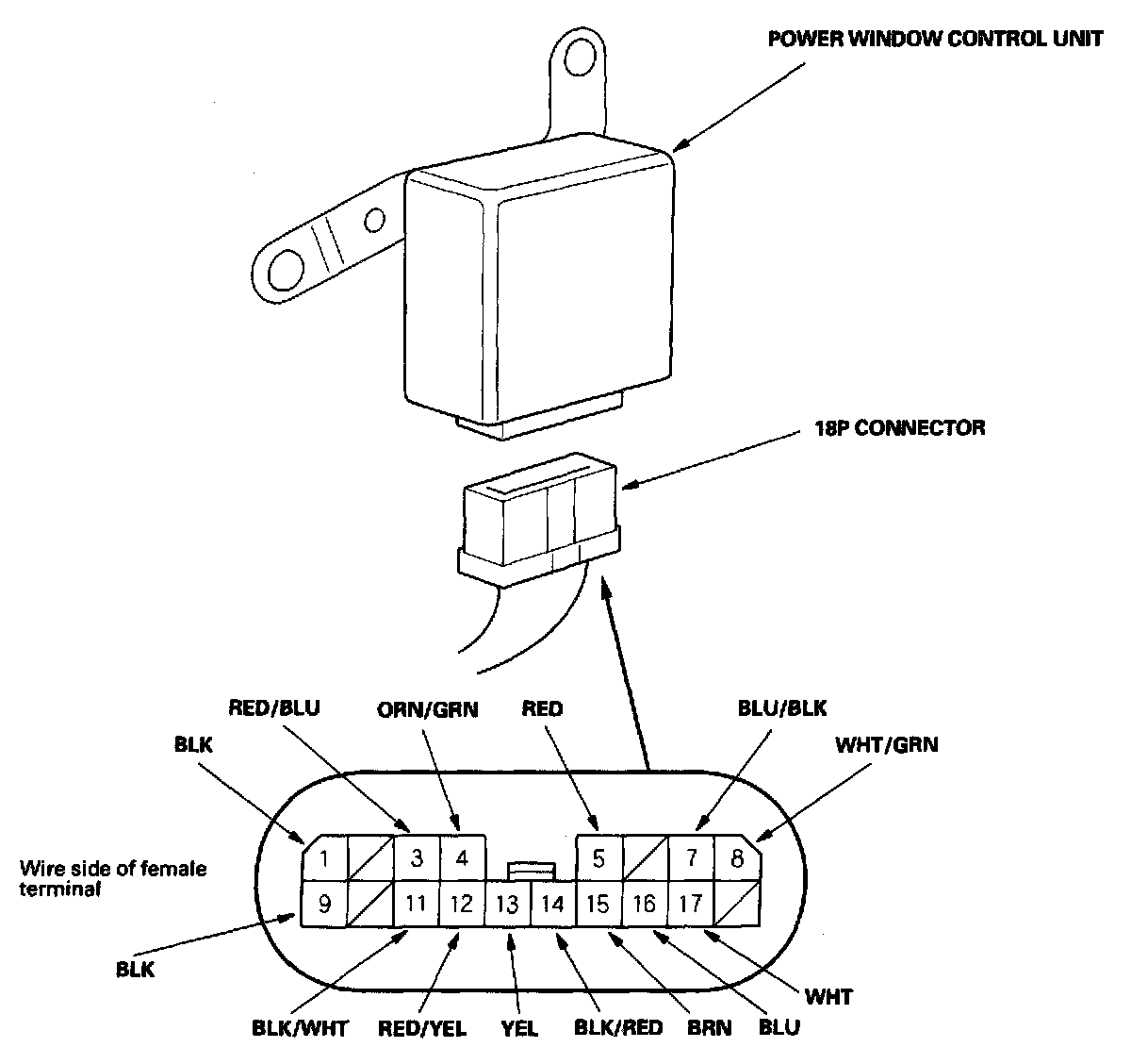 1. Remove the driver's door panel, and disconnect the 18P connector from the control unit.