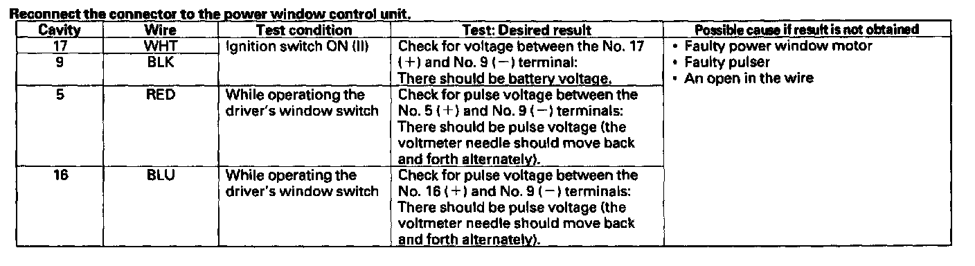Power WindowsControl Unit Input Test/Replacement