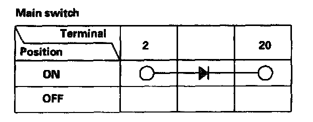 2. Check for continuity between the terminals in each switch position according to the tables.