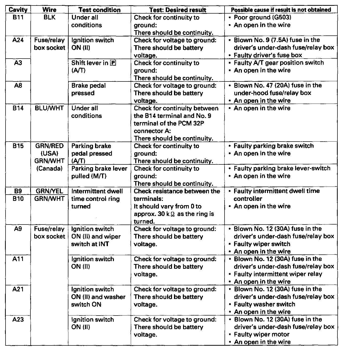 1. Before testing the wiper/washer control functions, troubleshoot the multiplex control system.