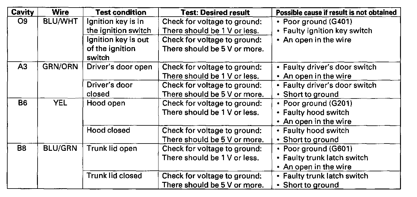 Keyless Entry/Security Alarm SystemControl Unit Input Test