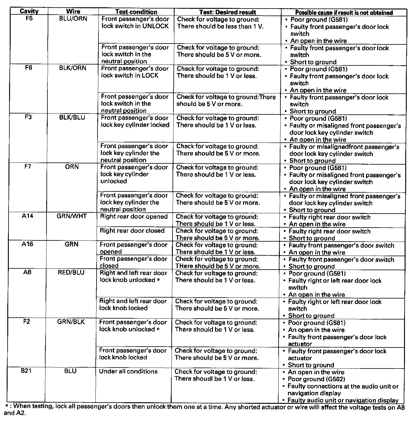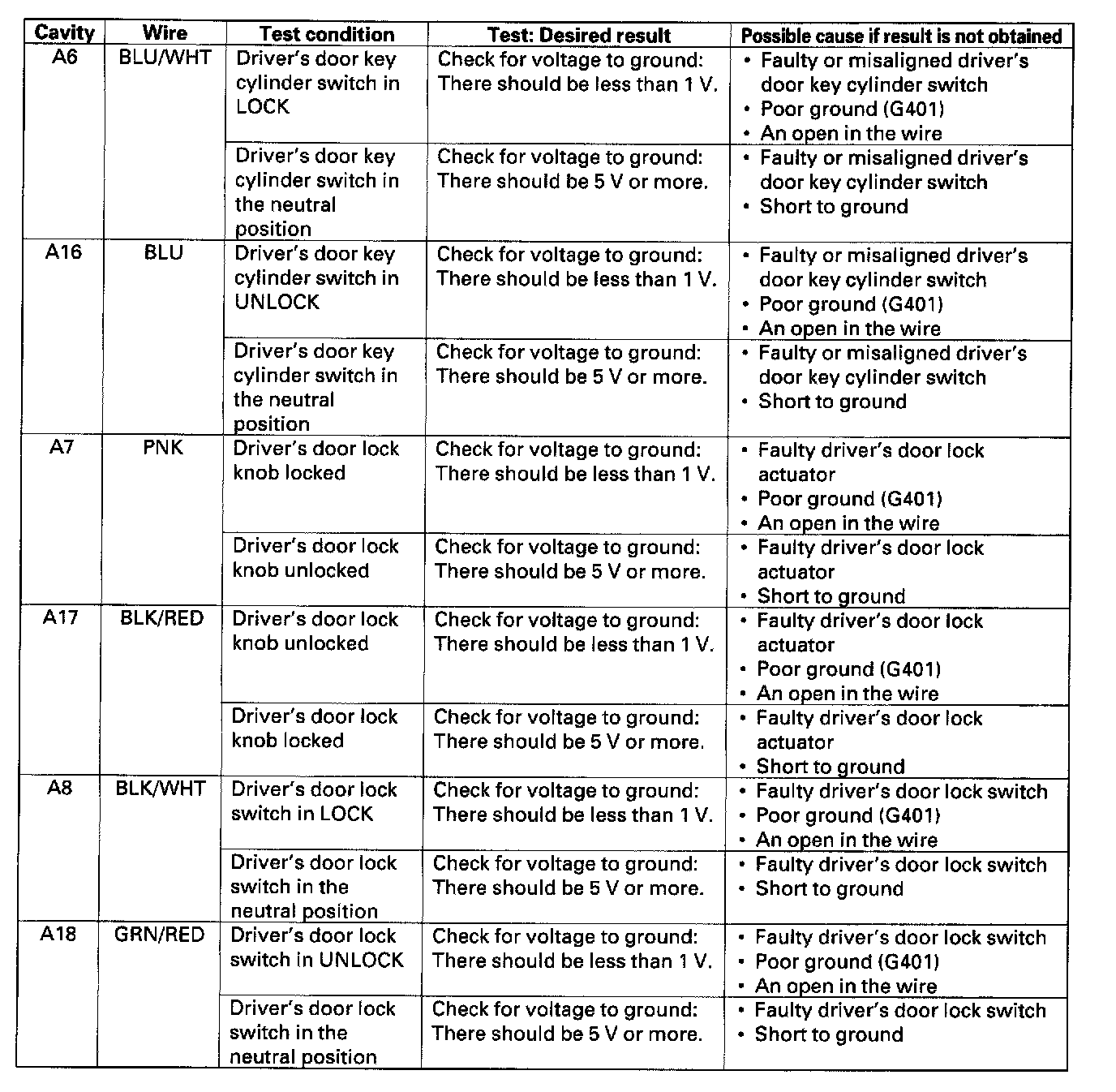 13. Reconnect the connector to the door multiplex control unit, make these input tests at the connector.