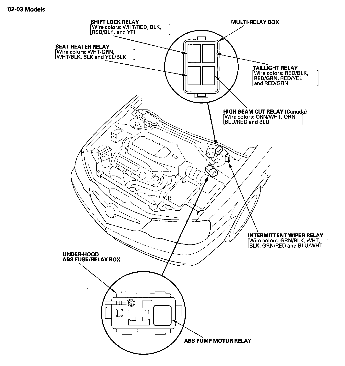 Under-hood ABS Fuse/Relay Box (02-03 Models):