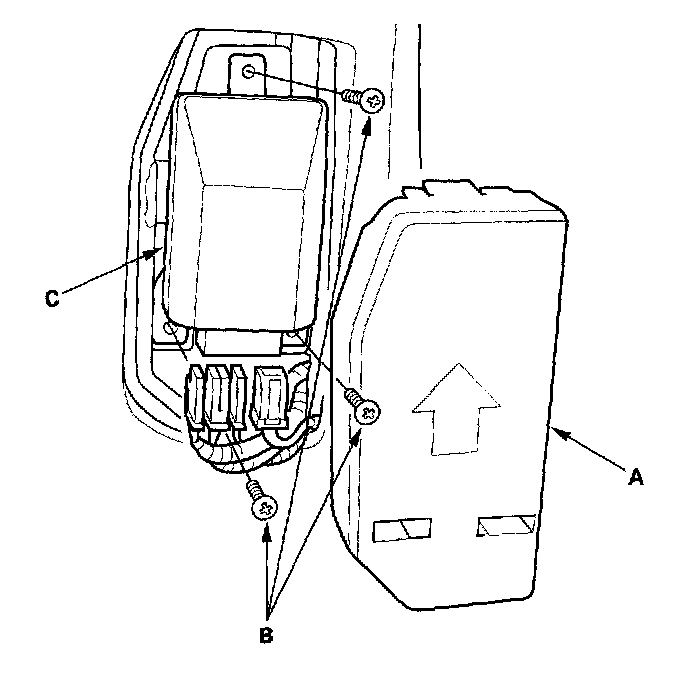 1. Place the new OPDS unit on the seat-back frame. Tighten the three screws (A), then connect the OPDS unit harness 8P and sensor connectors to the OPDS unit. Reinstall the cover.