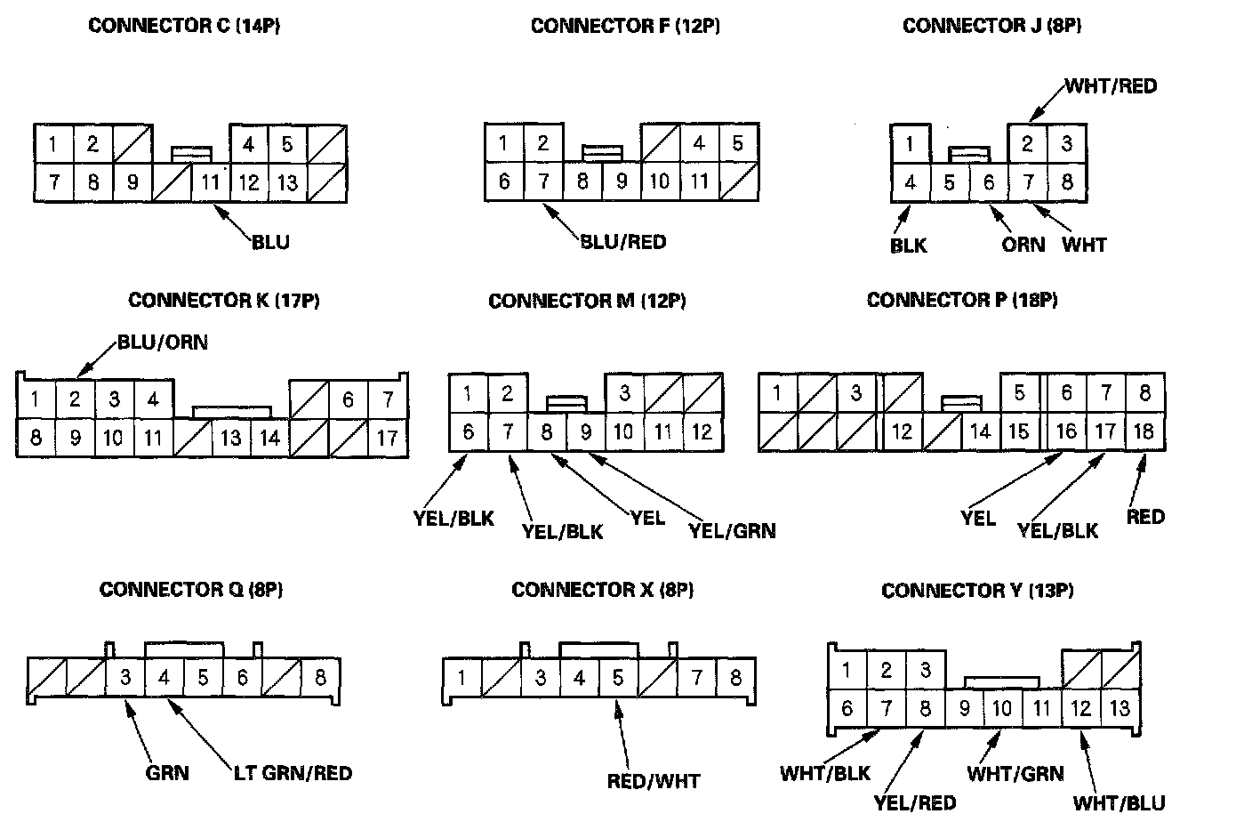 NOTE: All connectors are wire side of female terminals.