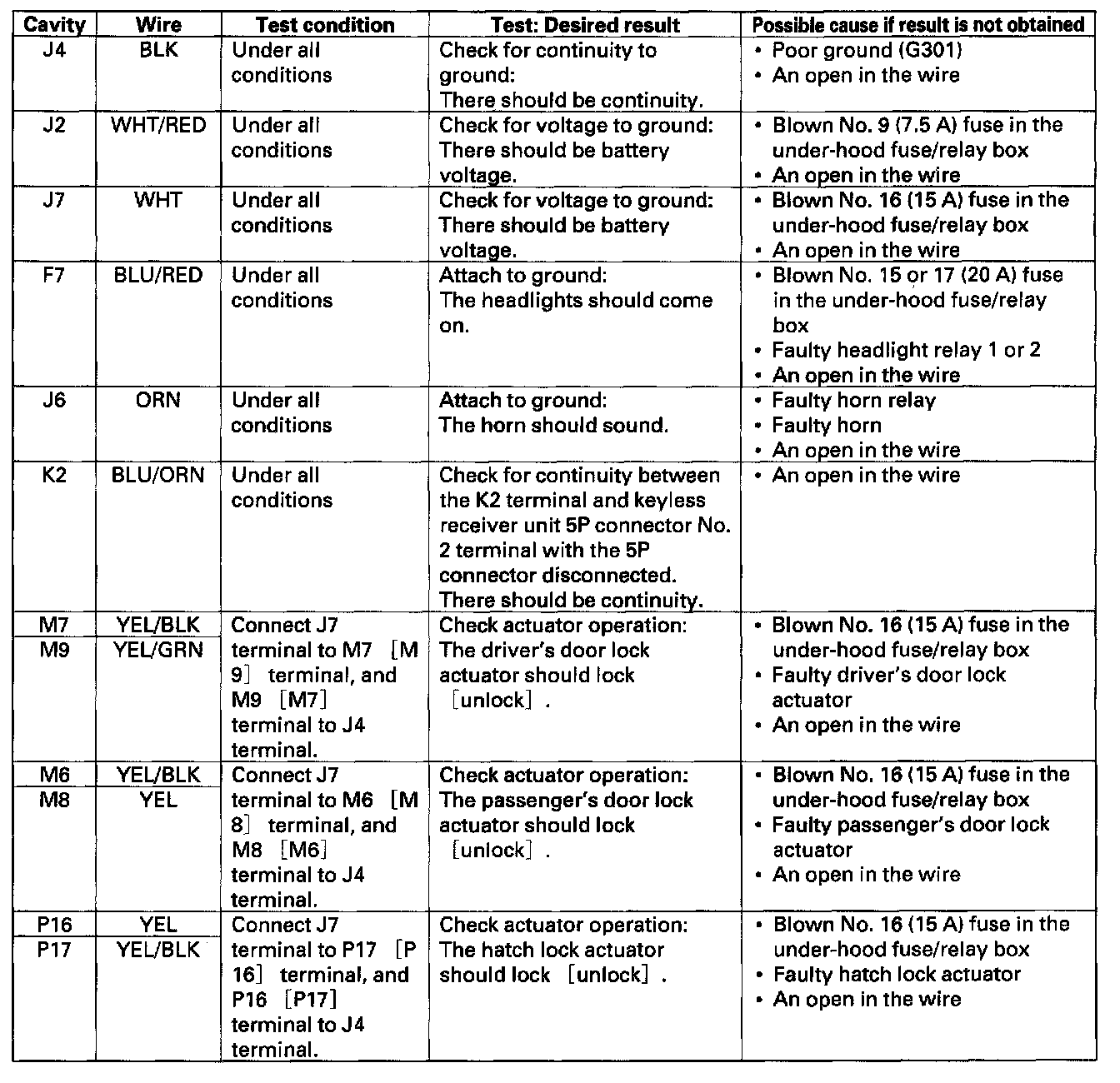 Keyless Entry Module: Testing and Inspection