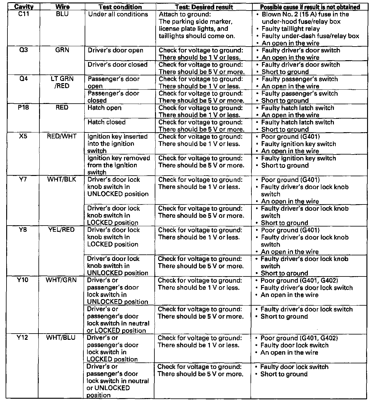 6. Reconnect all connectors to the under-dash fuse/relay box, and make these input tests at the appropriate connectors on the under-dash fuse/relay box