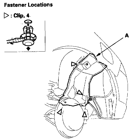 Fuel Pipe Protector Replacement1. Remove the clips, then remove the fuel pipe protector (A). Take care not to scratch the body.