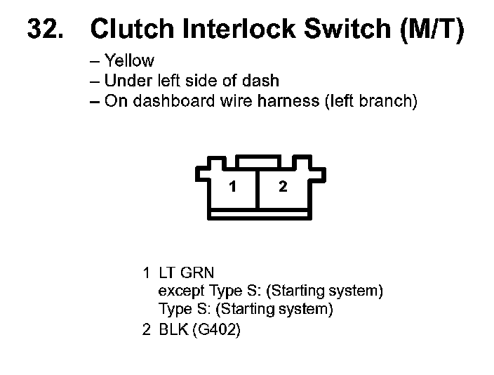 32. Clutch Interlock Switch (M/T):