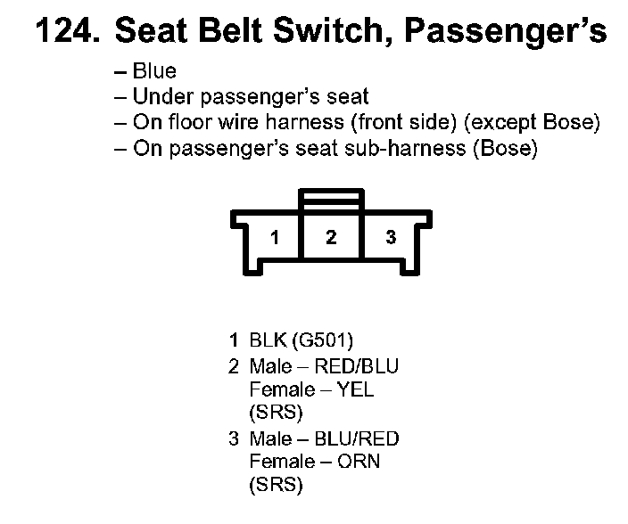 124. Seat Belt Switch, Passenger's: